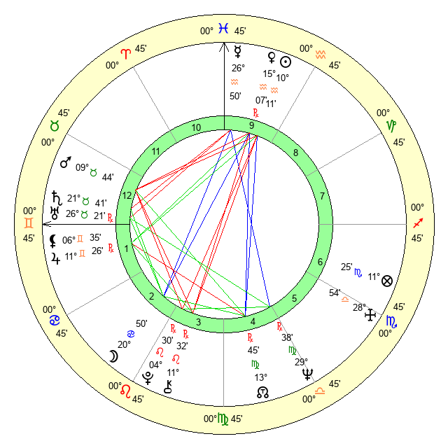 | Mars | 9 Taurus 45 | 20 Cancer 51 | 28 Gemini 27 |