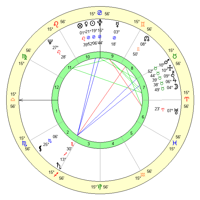 | Venus | 21 Cancer 53 | 7 Gemini 51 | 21 Scorpio 24 |