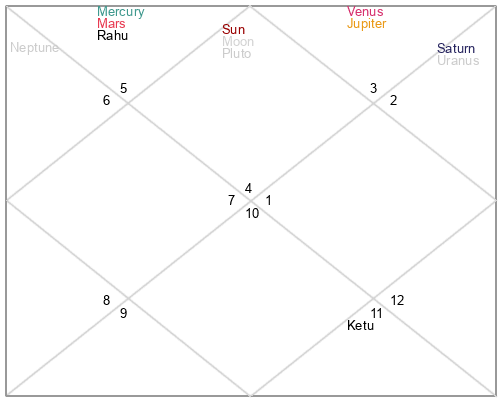 | Rahu | 5 Virgo 6 | 19 Pisces 45 | 0 Virgo 42 |