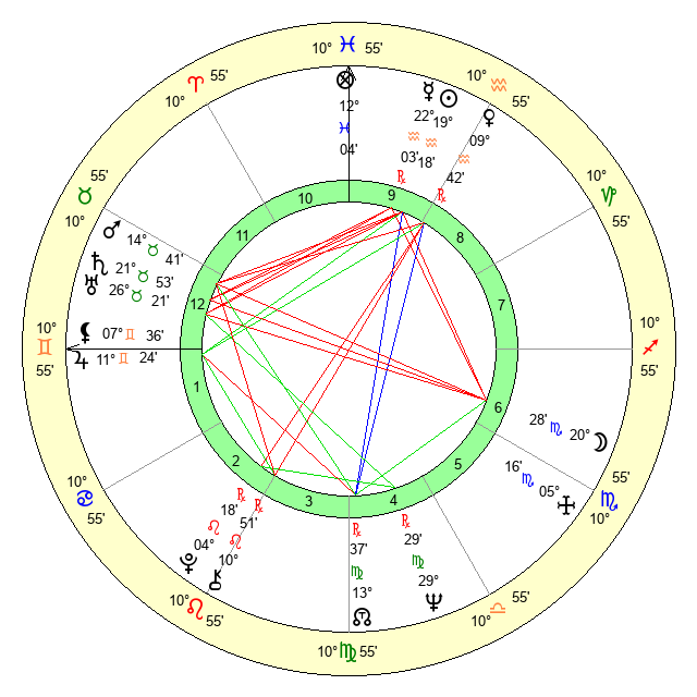 | Venus | 9 Aquarius 43 | 3 Aries 3 | 26 Pisces 21 |