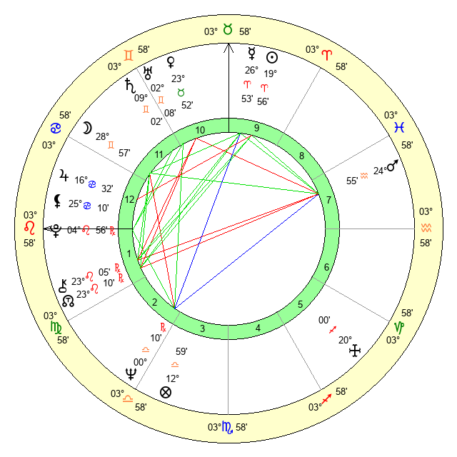 | Moon | 28 Gemini 59 | 25 Virgo 48 | 29 Gemini 46 |