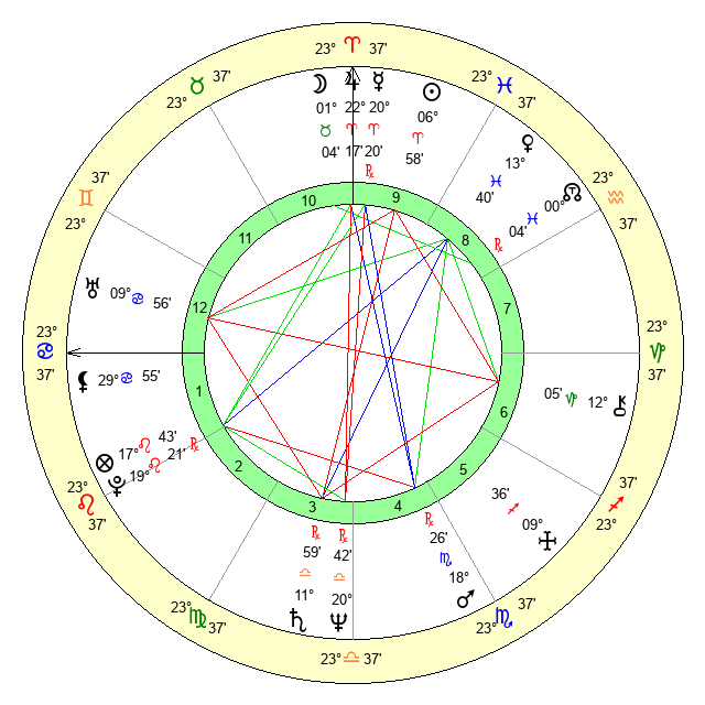 | Moon | 1 Taurus 5 | 12 Pisces 58 | 24 Sagittarius 33 |