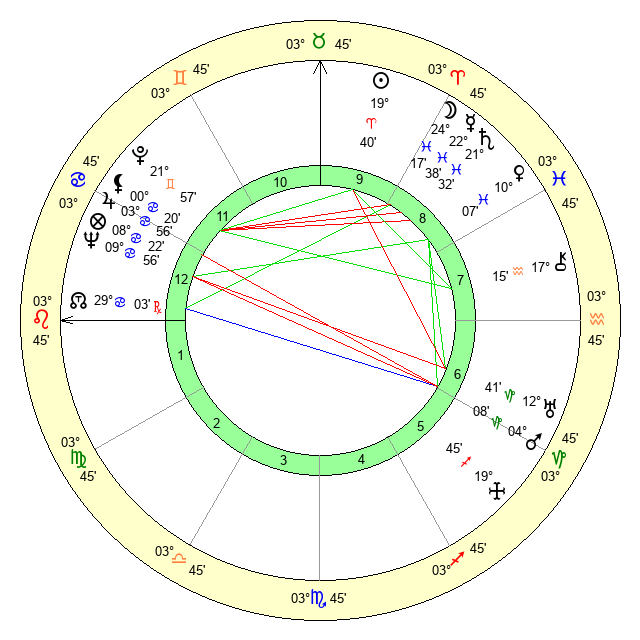 | Sun | 19 Aries 40 | 21 Aries 4 | 13 Leo 4 |