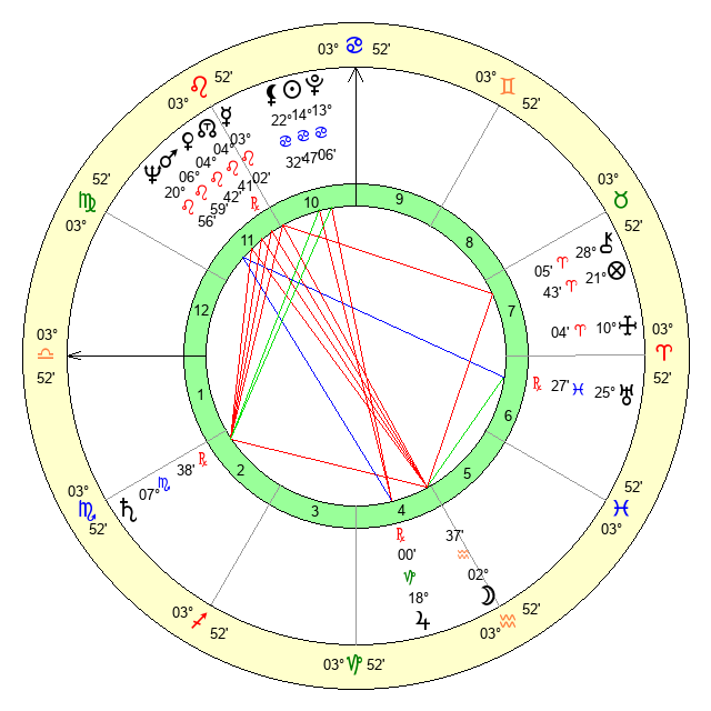 | Mars | 6 Leo 59 | 11 Virgo 32 | 10 Libra 50 |