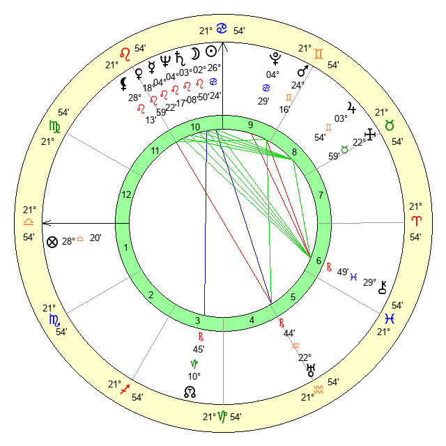 | Sun | 26 Cancer 24 | 27 Cancer 16 | 11 Scorpio 43 |