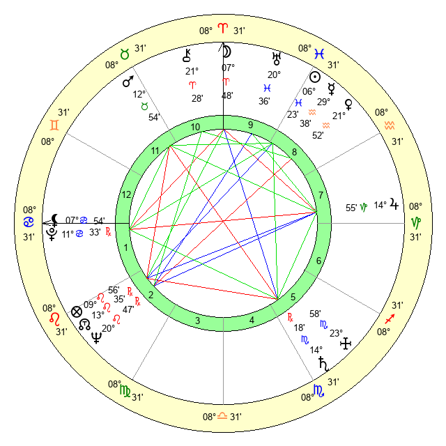 | Moon | 7 Aries 49 | 3 Aquarius 33 | 24 Scorpio 43 |