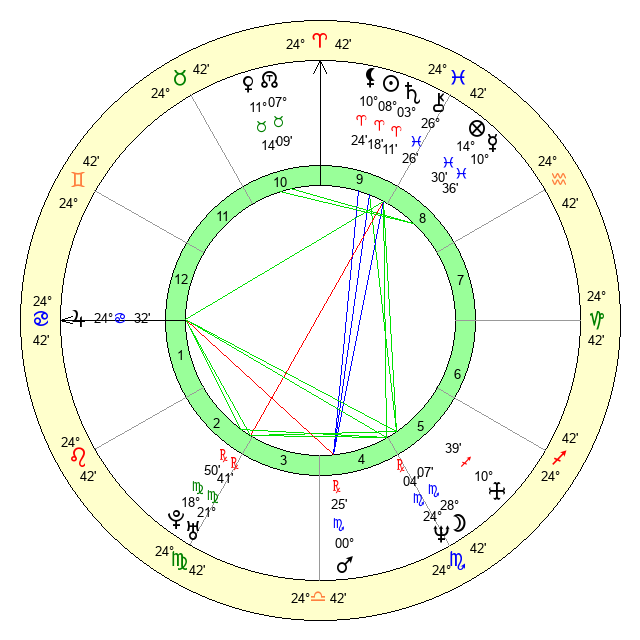 Venus | 11 Taurus 15 | 28 Pisces 42 | 18 Cancer 18 |