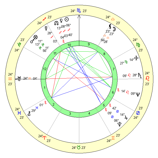 | Moon | 23 Libra 30 | 20 Scorpio 24 | 13 Virgo 13 |