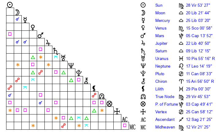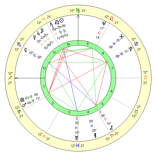 | Sun | 28 Virgo 53 | 29 Virgo 56 | 12 Capricorn 19 |