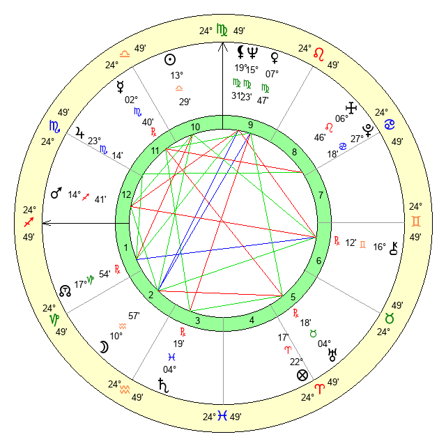| Neptune | 15 Virgo 23 | 0 Aries 21 | 16 Virgo 41 |