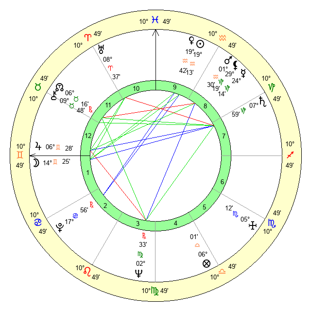 | Venus | 19 Aquarius 43 | 3 Aries 3 | 17 Gemini 18 |
