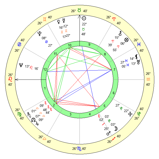 | Sun | 22 Taurus 49 | 23 Taurus 52 | 1 Virgo 24 |