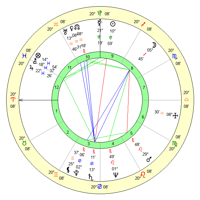 | Jupiter | 22 Pisces 12 | 13 Gemini 1 | 15 Aries 54 |