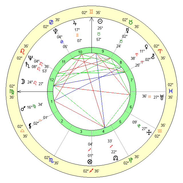 | Moon | 24 Leo 30 | 23 Capricorn 20 | 25 Cancer 43 |