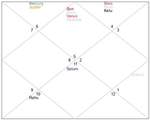 | Rahu | 8 Aquarius 17 | 18 Pisces 13 | 3 Aquarius 28 |