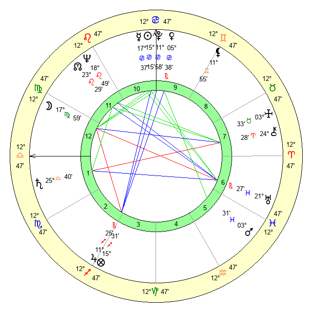 | Moon | 18 Virgo 1 | 9 Sagittarius 30 | 6 Gemini 53 |