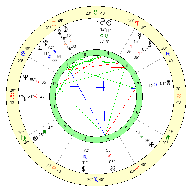 | Mars | 12 Taurus 55 | 6 Leo 23 | 25 Cancer 46 |