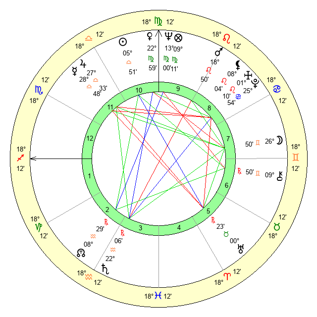 | Venus | 23 Virgo 0 | 12 Virgo 29 | 17 Capricorn 9 |