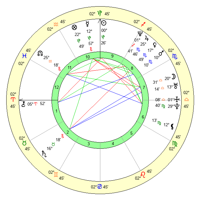Pluto | 29 Virgo 40 | 0 Aquarius 47 | 29 Virgo 11 |