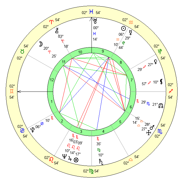 | Saturn | 11 Virgo 21 | 16 Pisces 52 | 5 Virgo 33 |