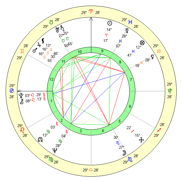 | Moon | 27 Scorpio 27 | 10 Cancer 26 | 8 Sagittarius 44 |