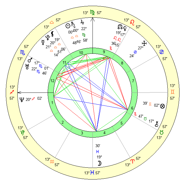 | Moon | 19 Pisces 29 | 21 Libra 57 | 13 Scorpio 48 |