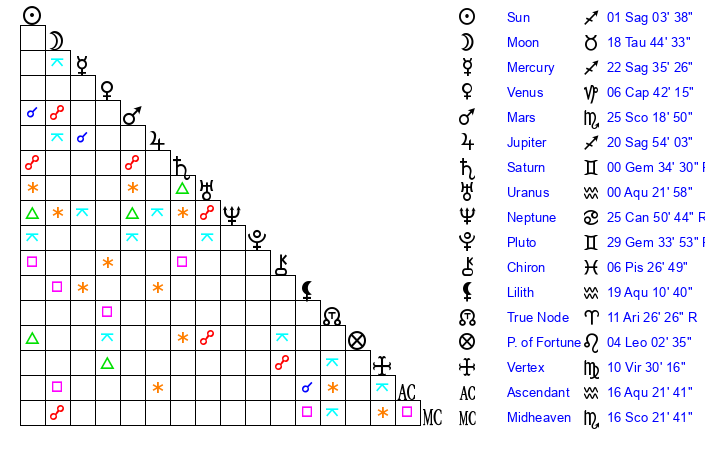 Mercury | 22 Sagittarius 35 | 22 Sagittarius 14 | 11 Aries 23 |
