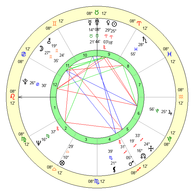 | Moon | 27 Gemini 36 | 25 Scorpio 10 | 18 Virgo 53 |