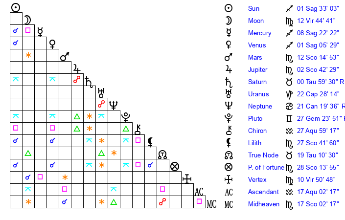 Moon | 12 Virgo 47 | 21 Virgo 2 | 9 Scorpio 53 |