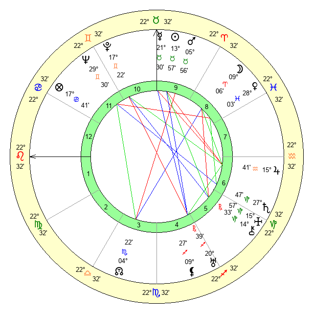 | Mars | 5 Taurus 56 | 7 Leo 39 | 0 Leo 30 |