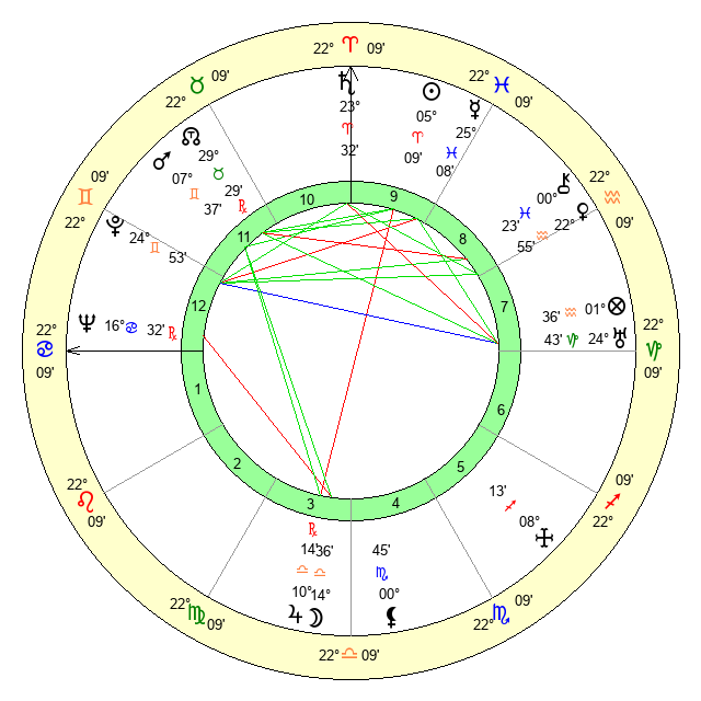 | Sun | 5 Aries 10 | 6 Aries 17 | 26 Cancer 7 |