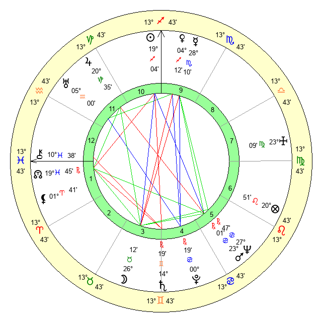 | Moon | 26 Taurus 13 | 18 Virgo 1 | 28 Gemini 53 |