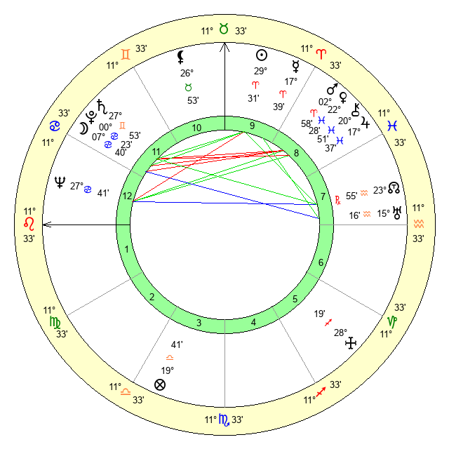 | Sun | 29 Aries 31 | 0 Taurus 52 | 15 Leo 2 |