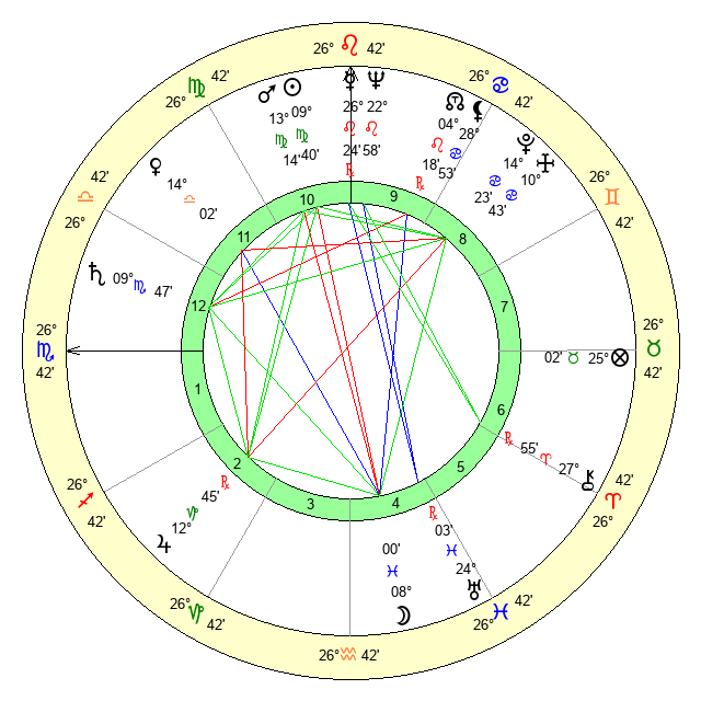 | Mars | 13 Virgo 15 | 17 Libra 2 | 18 Scorpio 53 |