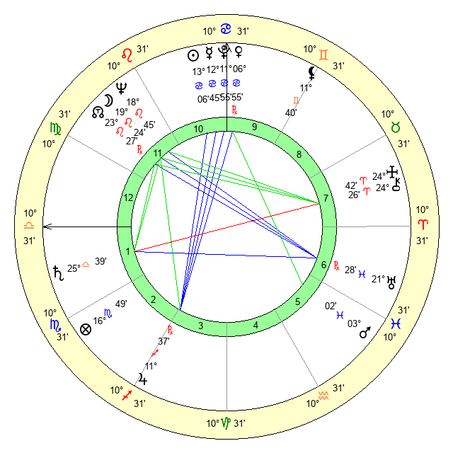 | Sun | 13 Cancer 7 | 13 Cancer 41 | 20 Libra 49 |