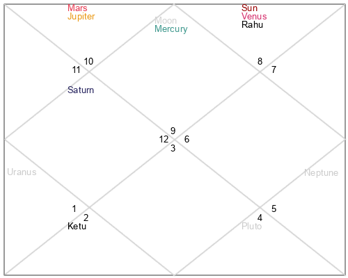 | Ketu | 5 Gemini 36 | 13 Virgo 33 | 0 Gemini 56 |