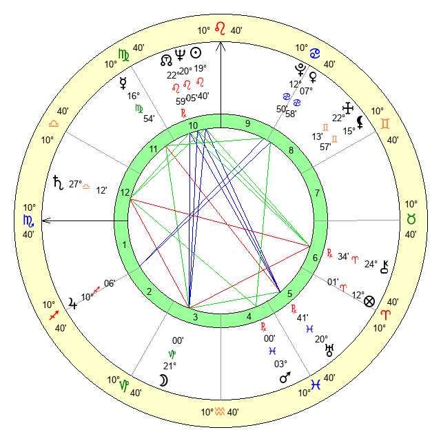 | Mercury | 16 Virgo 54 | 4 Leo 21 | 13 Sagittarius 54 |
