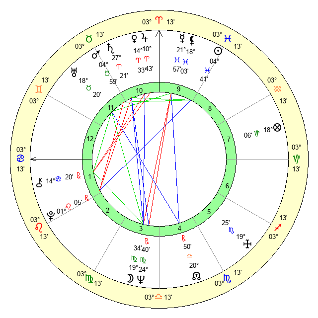 | Mars | 4 Taurus 59 | 17 Cancer 1 | 1 Cancer 11 |