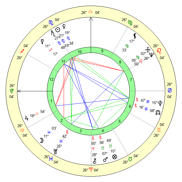| Moon | 11 Pisces 8 | 18 Virgo 21 | 23 Libra 55 |