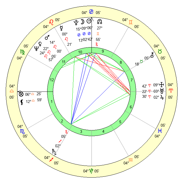 | Sun | 6 Cancer 42 | 7 Cancer 58 | 11 Libra 12 |