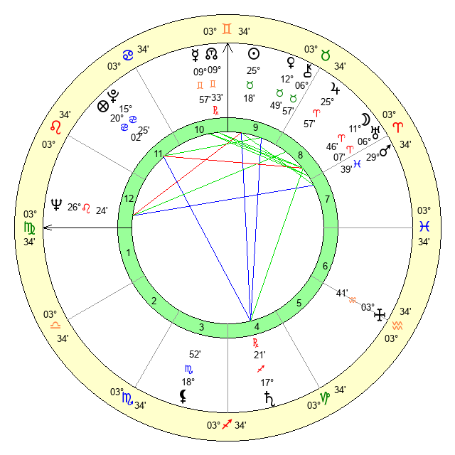| Mars | 29 Pisces 41 | 13 Leo 1 | 7 Gemini 41 |