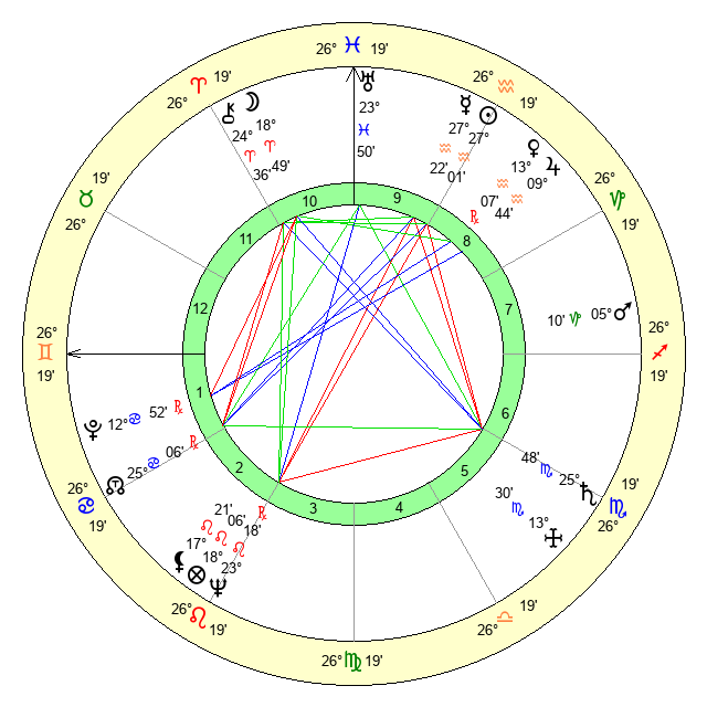 | Saturn | 26 Scorpio 17 | 19 Pisces 6 | 22 Scorpio 25 |