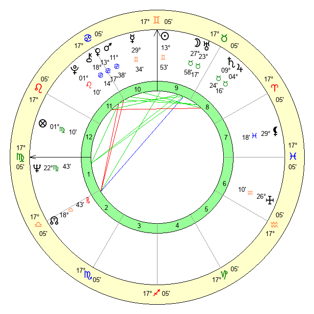 | Sun | 13 Gemini 53 | 14 Gemini 19 | 5 Virgo 12 |
