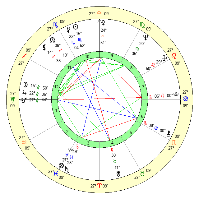 | Jupiter | 22 Capricorn 0 | 25 Cancer 9 | 10 Aquarius 43 |