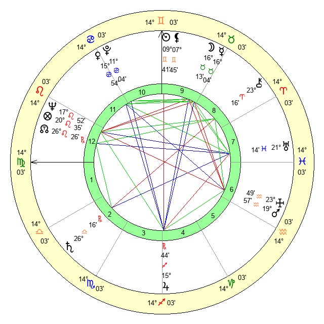 | Sun | 9 Gemini 41 | 10 Gemini 15 | 16 Virgo 28 |