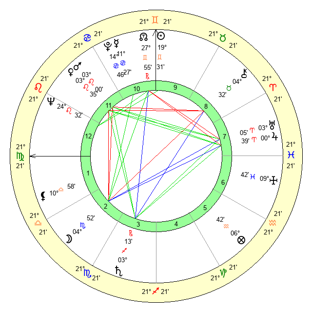| Moon | 4 Scorpio 52 | 22 Sagittarius 23 | 14 Gemini 45 |