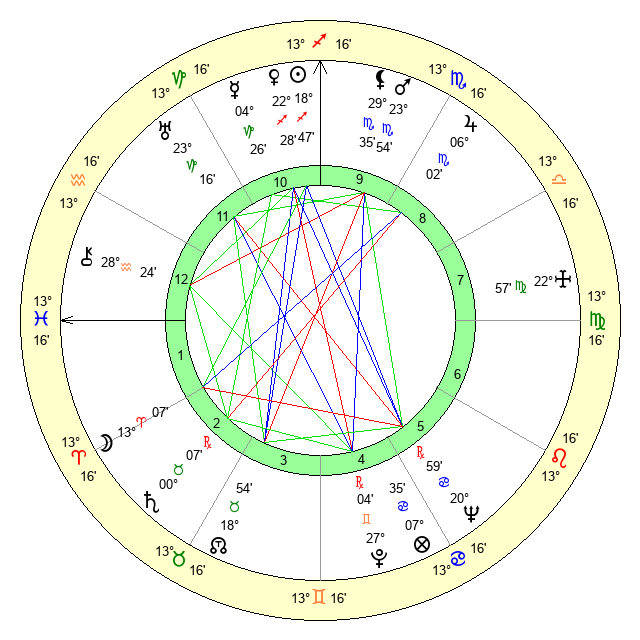 Mars | 23 Scorpio 54 | 6 Leo 1 | 16 Aquarius 7 |