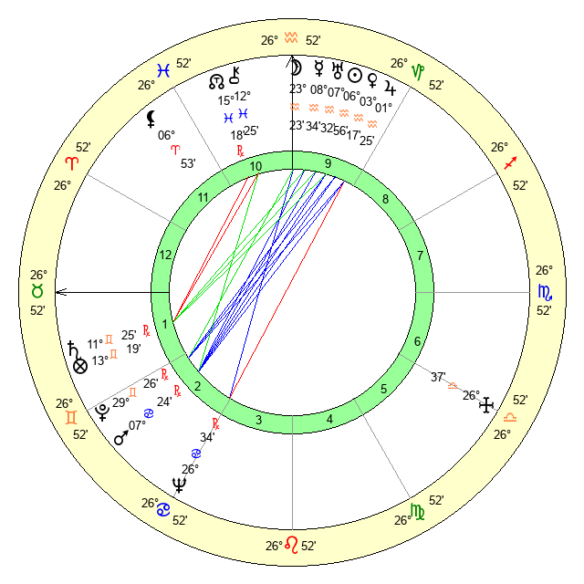 | Pluto | 29 Gemini 26 | 1 Aquarius 54 | 29 Gemini 49 |