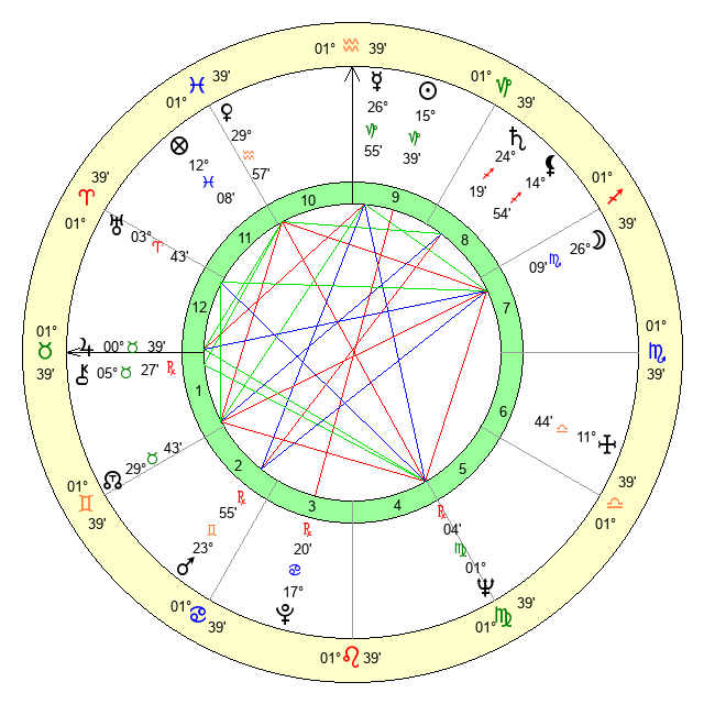 | Neptune | 1 Virgo 5 | 27 Pisces 22 | 28 Leo 48 |