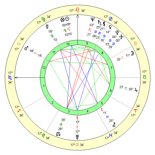 | Moon | 11 Gemini 34 | 9 Leo 47 | 6 Gemini 52 |